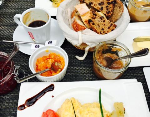 最大的幸运还是这里的各种美食: 面包,热腾腾的煎蛋和香浓的咖啡