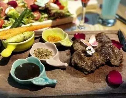 很有心思的一家以花为主题的餐厅,旁边就是花艺,名曰生活美学空间,装修同样是浪漫满屋。 花艺店和餐厅跨界联手,因而整个餐厅都被鲜花包围,就连餐桌上都满布玫瑰花瓣,餐厅的玄关处也是 花团锦簇,还有两只小...