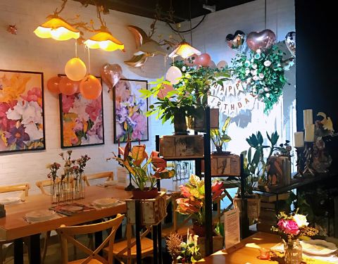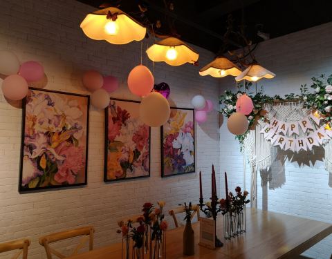 ...,随处散落的鲜花花艺,有好多生日装饰,超级适合生日的小仙女们过来打卡拍照,随便一张都刷爆朋友圈