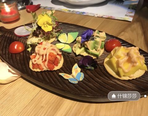 - 但是这道菜非常惊艳,懂我的人都会知道,我是非常喜欢装饰得很美很美的菜品,就算是那种大盘子、小食...