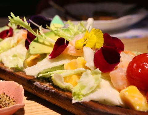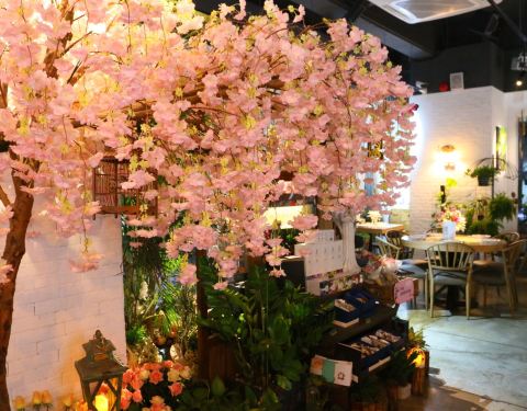 很有心思的一家以花为主题的餐厅,旁边就是花艺,名曰生活美学空间,装修同样是浪漫满屋。 花艺店和餐厅跨界联手,因而整个餐厅都被鲜花包围,就连餐桌上都满布玫瑰花瓣,餐厅的玄关处也是 花团锦簇,还有两只小鸟在吱吱喳喳唱歌,门外门内似是穿越了不同空间。 环境美出品也美,任一餐品都与鲜花搭配,浪漫到让人晕乎,餐桌上还贴心提示如是生日、求婚、纪念 日等特别日子,客人可提前致电告知餐厅作特别布置,无怪乎现场看到不少在庆祝的情侣和家庭。 推荐:花厨特色沙拉、法国梅花猪扒、黑椒牛柳丝意面、桃花公主花蜜酒、玫瑰酸奶芝士鲜花蛋糕 感谢朋友的生日邀请,这家,有下次。