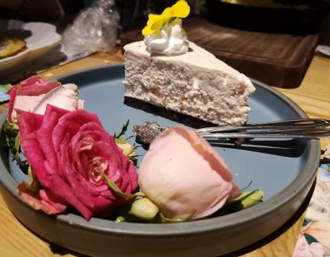 口味上面比较的一般,但是喜欢这边的玫瑰花蛋糕,有芝士味道也是挺不错的,而且摆盘是比较的漂亮,旁边的玫瑰花都是可以吃的,这点是分的特别,而且服务态度都相当的不错。 环境也很好的。
