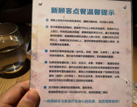 - 餐桌上还贴心提示如是生日、求婚、纪念 日等特别日子,客人可提前致电告知餐厅作特别布置,无怪乎现...