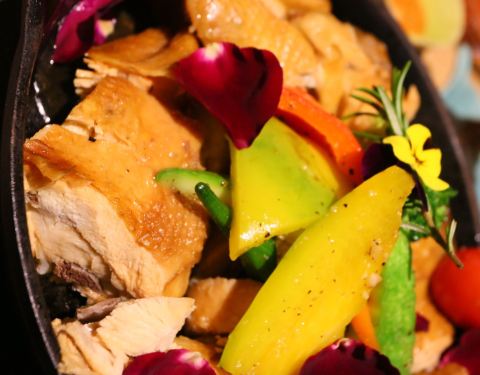 少女风的田园风格餐厅,满墙满墙都是花海,好美啊。 被外表吸引了过去,想不到味道还不错哦。 德国烧鸡上放满了香料,好看又好吃,这里的味道不会很重,适合喜欢小清新的人。 炒饭里加了鹅肝,口感更细腻和浓郁,适合米饭爱好者。 最喜欢还是黑醋沙拉,酸酸甜甜无可挑剔。 从五羊邨地铁口出过对面天桥,餐厅就在天桥脚附近,位置也十分方便。