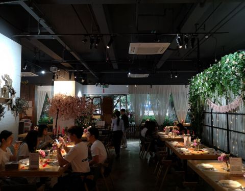 一家以“花”为主题的餐厅,位于热闹繁华的都市中,推开门却仿佛到了另一个世界,随处可见的鲜花,加上柔和温馨的灯光,恍惚间好像进入了皇家花园,美不胜收,妙不可言