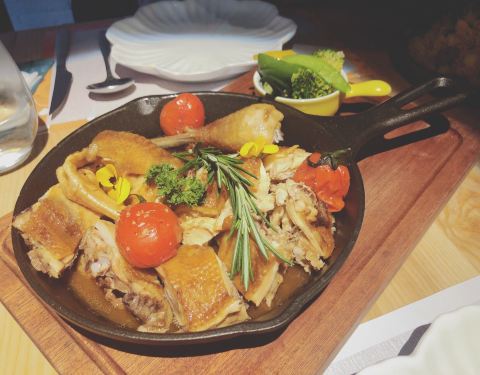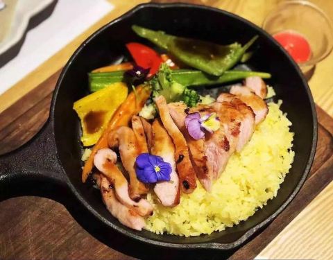 少女风的田园风格餐厅,满墙满墙都是花海,好美啊。 被外表吸引了过去,想不到味道还不错哦。 德国烧鸡上放满了香料,好看又好吃,这里的味道不会很重,适合喜欢小清新的人。 炒饭里加了鹅肝,口感更细腻和浓郁...