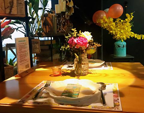 很有心思的一家以花为主题的餐厅,旁边就是花艺,名曰生活美学空间,装修同样是浪漫满屋。 花艺店和餐厅跨界联手,因而整个餐厅都被鲜花包围,就连餐桌上都满布玫瑰花瓣,餐厅的玄关处也是 花团锦簇,还有两只小...很有心思的一家以花为主题的餐厅,旁边就是花艺,名曰生活美学空间,装修同样是浪漫满屋。 花艺店和餐厅跨界联手,因而整个餐厅都被鲜花包围,就连餐桌上都满布玫瑰花瓣,餐厅的玄关处也是 花团锦簇,还有两只小鸟在吱吱喳喳唱歌,门外门内似是穿越了不同空间。 环境美出品也美,任一餐品都与鲜花搭配,浪漫到让人晕乎,餐桌上还贴心提示如是生日、求婚、纪念 日等特别日子,客人可提前致电告知餐厅作特别布置,无怪乎现场看到不少在庆祝的情侣和家庭。 推荐:花厨特色沙拉、法国梅花猪扒、黑椒牛柳丝意面、桃花公主花蜜酒、玫瑰酸奶芝士鲜花蛋糕 感谢朋友的生日邀请,这家,有下次。