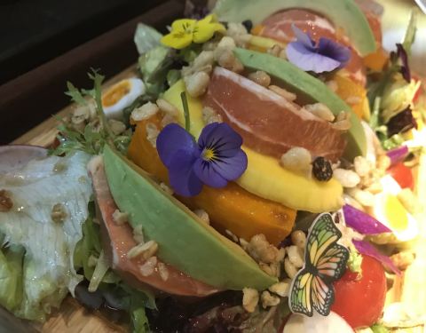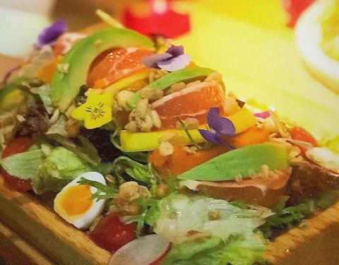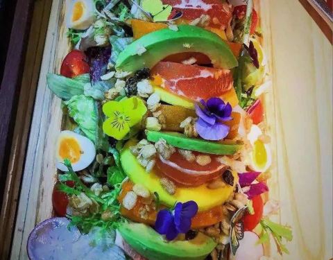 - 点的客人特别多,试试咯,木盘子盛着大大一盘五彩缤纷的沙拉,南瓜、牛油果、各色蔬菜拌着酸酸甜甜的...