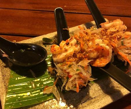 这是一家位于普吉岛海滩附近的泰国餐厅,步行距离大概十五分钟左右,位置也是比较好好找的。所以生意不错,最爱他们家的泰式大虾,每个虾仁都是晶莹饱满,入嘴也富有弹性,是这家餐厅的招牌。