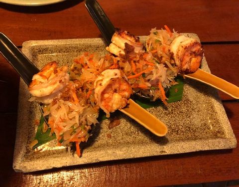 - ...就是上菜会稍微慢一点,不过菜的摆盘还有味道真的超级赞,泰式柚子沙拉搭配虾,第一次吃,感觉很不错