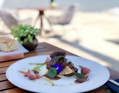 索菲特特色酒店的餐厅!特色是可以脚踩沙子听涛享美食。服务周到,彩色也不错,旁边沙滩巴!喝酒聊天,很惬意