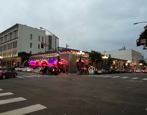 位于圣地亚哥的市中心,是非常热闹的酒吧街,分布在好几个街区,晚上这里灯红酒绿,好多人在这里放松,音乐很欢快,周末更显热闹
