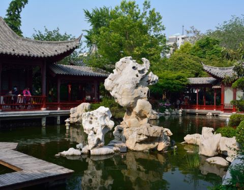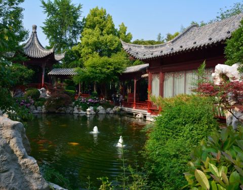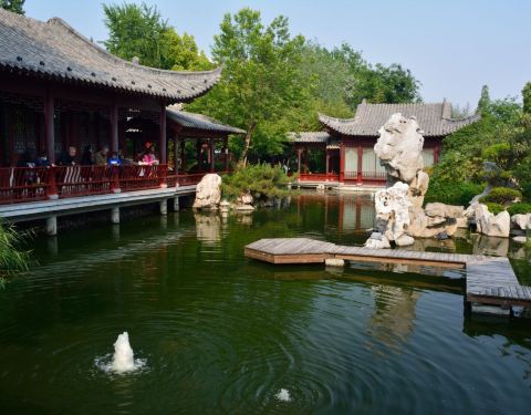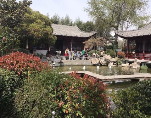 郑州市紫荆山公园内有个苏式园林小园,名叫梦溪园,里边溪水潺潺、鸟语花香,号称郑州最美庭院