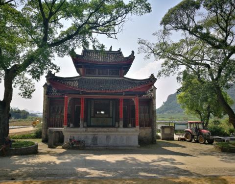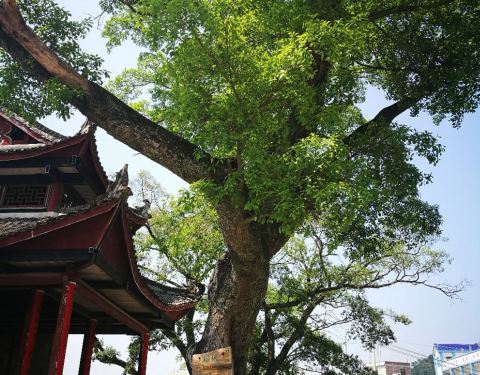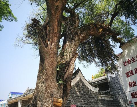 因为村庄的历史比较悠久,古时候的人们在村口建了戏台,而且种了很多樟树。这里是村民们聚集开会的地方,现在古戏台已经作为地方文物保护起来了。