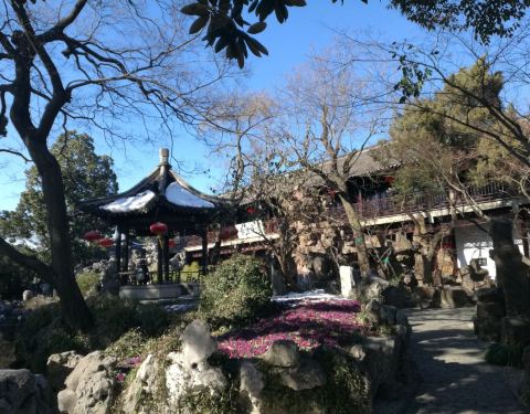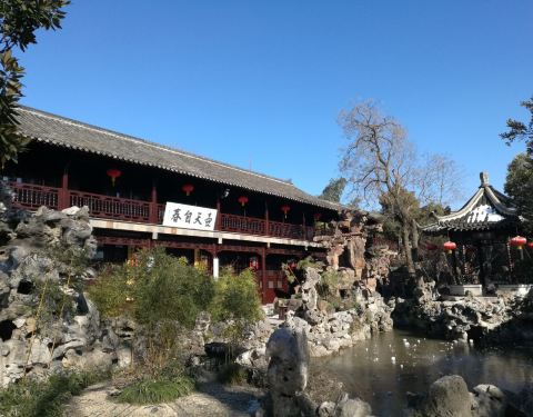 如果说抱山楼是个园的中心,那么,“清漪亭”就是不得不提的一笔“点睛”。这座秀丽挺拔,娇好端庄的六角小亭,是赏园的绝佳位置。走近小亭,但见楹联上写着: 何处箫声,醉倚春风弄明月; 几痕波影,斜撑老树护...