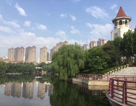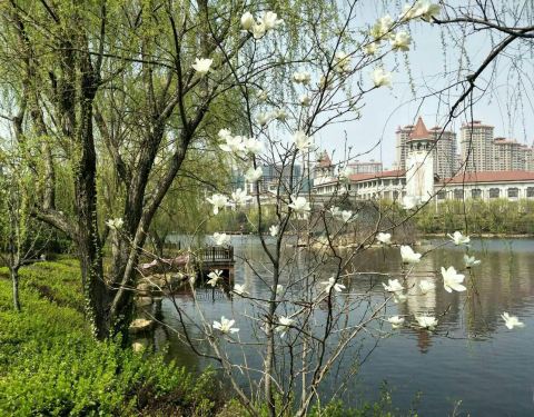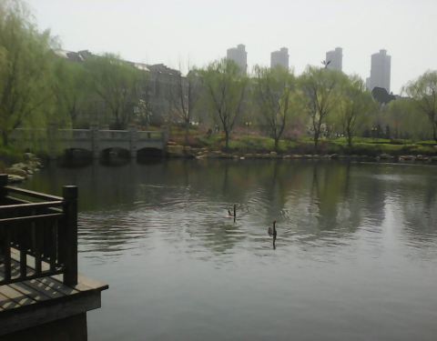 从北京开车到朋友家玩,早晨起来到半岛公园散步环境优美,空气清晰非常不错哦……
