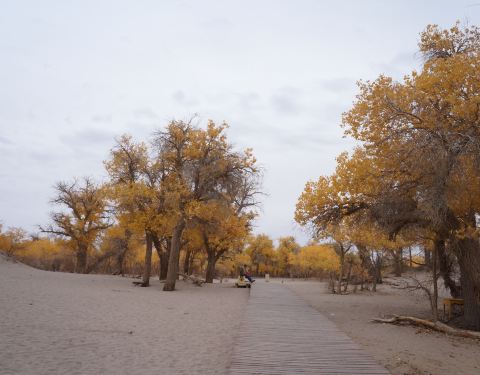 在胡陽林景區內,不是胡楊卻人気極旺,有自己的牌樓、小賣店,即使在景區最外面的一個奌,大家都願意拜訪她,美麗动人的枝幹像千手覌音般的向外延展,讓普羅大眾把心願都告訴她~