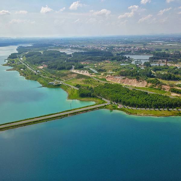 茂名 露天矿生态公园就在牙象艺术公园不远处,开车不到几分钟时间,相邻的两个地方可以连着游玩。应该是可以开着共享电动车环湖游的,但依我所见,电动车都聚集在一处空地上,没有正式被 投入使用,不知具体原因。生态公园十分大,最主要的有几处游玩的地方,湖内不能开车驶入,只能步行,车都可以停到博物馆前的停车场,再步行。湖边有几处免费停车的地方,能从不同的角度 来接触露天矿被 重新活化的人工湖风景。从不同的角度 ,根据不同的光线,能看到风景也不一样。如没有航拍,看到的是一处很普通 的湖光风景,岸边两处绿树成荫,如有航拍,会看到颜色鲜艳的俯拍照。好比 九寨沟 一样的蓝绿湖水色。生态公园四周还是有不少废旧工厂,大型载货车辆还挺多的,驾驶要特别小心博物馆门前的大型停车场,寥寥无几的车辆,算是一处小众的旅游点,镜头后的位置 也有一处直升机升降台,环湖一圈,发现了两处升降台通过航拍能看出湖水的颜色十分鲜艳,并且被拦截成两段颜色不一样的风景,这也是该地最吸引人的地方,不能否认,这种绿色太舒服了,放人身心放松的感觉
