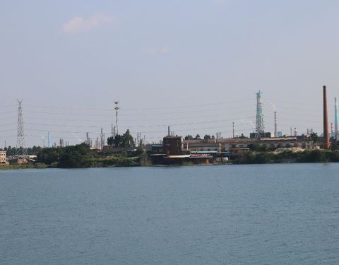生态公园四周还是有不少废旧工厂,大型载货车辆还挺多的,驾驶要特别小心 好比 九寨沟 一样的蓝绿湖水色