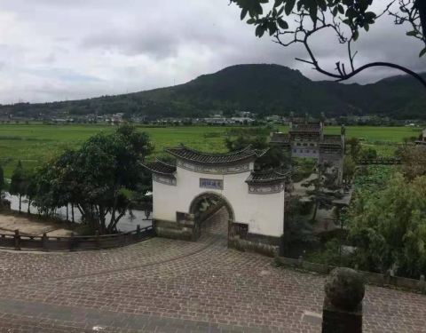 腾冲和顺镇的标志性建筑牌坊,以及镇前的大片片的荷塘稻田,这个坝子,就是文治光昌,牌坊上写的就是文治光昌,白墙黑瓦,牌坊与文昌宫正对。