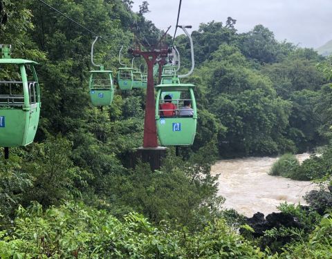 建议坐缆车,一方面价格不贵,一方面,走了很久也比较累了,坐缆车可以休息一下,还可以在高空看风景