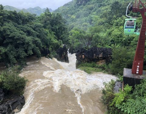 天星素道一出口站是黄果树大瀑布天星桥景区内一条比较短的特殊索道,并不是爬山而用,是在景点终点方便游客轻松返程的,并且在索道上可以从半空中换个角度从上而下俯视欣赏美景。