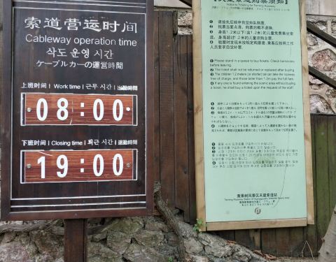 接近出口,一早出来开车一小时等车一小时第一个景点逛了接近三小时,中午一点了,一看有缆车10元还便宜,就想去坐,结果来了一个貌似工作人员说去排队至少二十分钟,还不如花五分钟走出去,于是走出去,确实只花了十分钟。