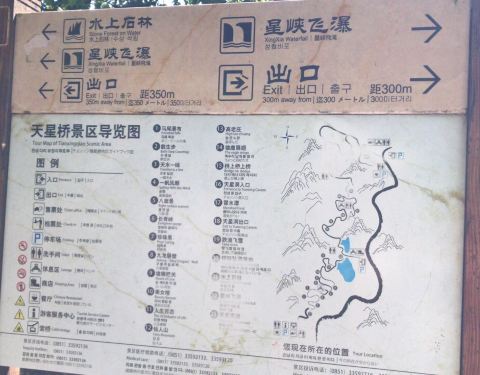 当你游完桥上桥上桥和水上石林后会看到景区出口及索道的标志牌,跟着标志牌标识的方向走一段,就到了天星索道岀口站,这时你有两个选择:一是坐索道,二是步行。大部分人都会选择坐索道,原因两个:一是这时已精...