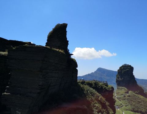 像赞美人而伸出的大拇指:“你是第一”据说清朝大书法家严寅亮(书写颐和园匾额)书写“黔山第一”也...黔灵山第一石:西线上梵净山,到达山顶草甸层后,立于山头的一尊奇石,像赞美人而伸出的大拇指:“你是第一”据说清朝大书法家严寅亮(书写颐和园匾额)书写“黔山第一”也来自它的灵感