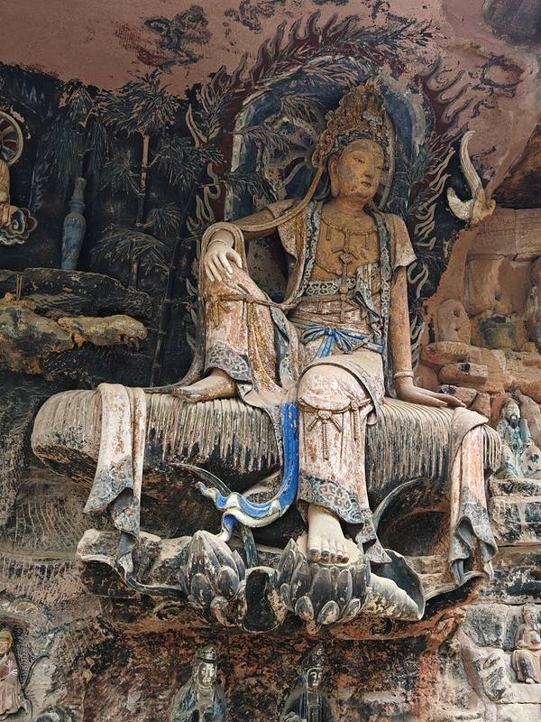 安岳毗卢洞|绝美紫竹观音的一些细节 |||第一次见到这尊紫竹观音,是在国博的『盛世修典』大展上的3D打印版,第一眼惊艳,无法自持。很快就安排了安岳行,飞到重庆,一人一车经大足至安岳。 · 说实话,真正看到实...