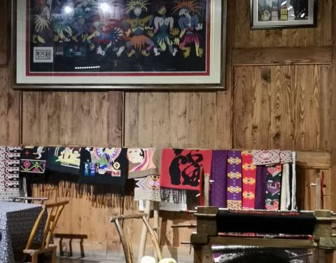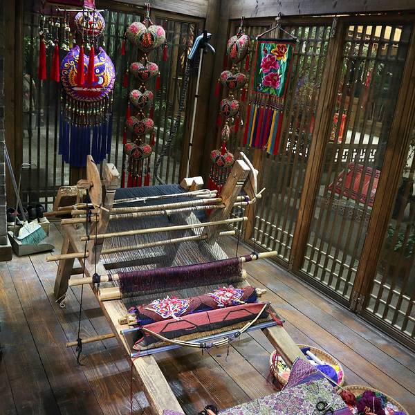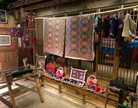 土家民俗博物馆之绣房:绣房,最有特色的就是土家女儿们用一双双巧手织出的西兰卡普,色彩绚丽,织工...土家民俗博物馆之绣房:绣房,最有特色的就是土家女儿们用一双双巧手织出的西兰卡普,色彩绚丽,织工精湛,件件都是不错的工艺品。