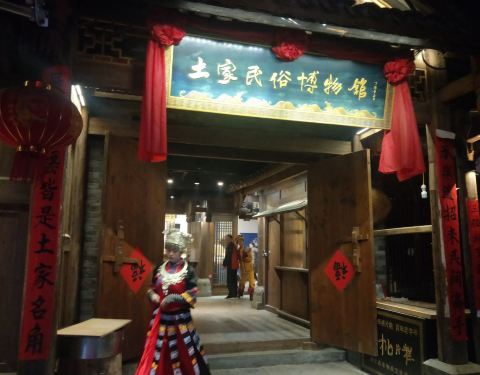 ...上让人帮忙加工,爆好了打开机器口,“砰”的一声爆在事先拉好的口袋里,对我来说,这就是幸福的味道博物馆位于女儿城主街道路右侧,进门左手边就是摔碗酒,如果不想去巴人堂吃饭又想喝摔碗酒,可以在这里过一下瘾。里面陈列展示了土家族人民生产生活、婚庆嫁娶等民俗用具,瓦屋内原汁原味的布景,让人身临其境感...博物馆位于女儿城主街道路右侧,进门左手边就是摔碗酒,如果不想去巴人堂吃饭又想喝摔碗酒,可以在这里过一下瘾。里面陈列展示了土家族人民生产生活、婚庆嫁娶等民俗用具,瓦屋内原汁原味的布景,让人身临其境感受到浓郁的民族风情。腌菜坛子、耕地的犁、斗笠、竹扫帚……我外公家至今还有这样的火坑,冬天点燃一堆柴火,烧一锅水,房梁上熏着腊肉,一家人坐着椅子围在火坑四周闲话家常。爆米花机器,小时候我很喜欢吃用这种机器爆出来的爆米花,家里没有机器,就自己提着米扛着柴到街上让人帮忙加工,爆好了打开机器口,“砰”的一声爆在事先拉好的口袋里,对我来说,这就是幸福的味道。吊脚楼模型。结婚用的轿子和用绳子绑好的陪嫁品,绑陪嫁也是个技术活。土家族新娘新郎传统服装。婚房里的陈设。除了各种物品陈列以外,有30余位民间老艺人常年在博物馆这里轮流进行西兰卡普、摆手舞、肉连响、哭嫁、打糍粑等民间技艺绝活和民俗表演,传承非物质文化遗产。博物馆里现在比以前商业了,里面多了不少卖东西的地方。 展开