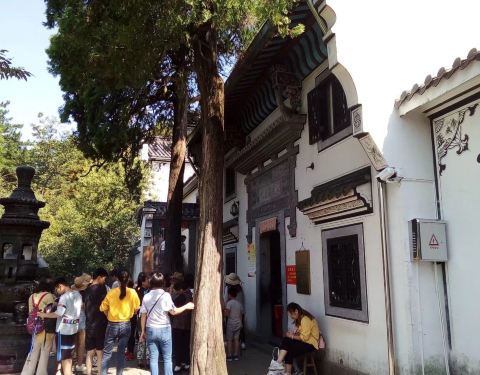这座寺院依山而建,与著名的百岁宫相邻,规模不大,隐于繁茂的树林之间,传统的白墙黑瓦江南风格建筑,非常古朴,前来进香的游客、信众很多,香火很旺。