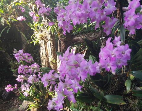 兰园内景色迷人,各种兰花漂亮迷人,尤其是蝴蝶兰最为漂亮。园内还有空中花园更是一绝