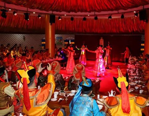 在黄花沟景区吃手扒肉、烤全羊、喝奶茶是不可少的。我隆重推荐一下来辉腾锡勒草原景区(黄花沟)必须品尝一下宫廷宴“诈玛宴”,在这里你就是高贵的王爷。 赏宫廷歌舞,品纯正的蒙古美食,对酒当歌,把酒言欢,感...