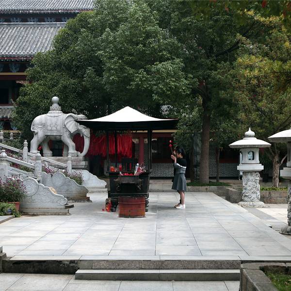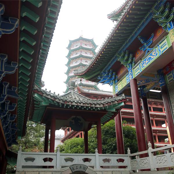 免票进入。进入大门后会见到池塘,桥上有座大观音像,这里拍照不错。本身喜欢拍塔,就为了这塔而来,但是在寺内逛了一圈,都无法拍到整个塔,也不能上去塔的底部。