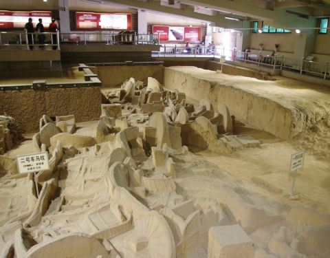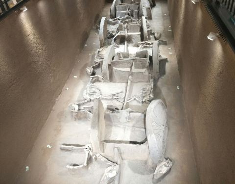 特别小的一个景点,三门峡的文物陈列馆,为了保护车马坑而修建,是那种几十年的老建筑