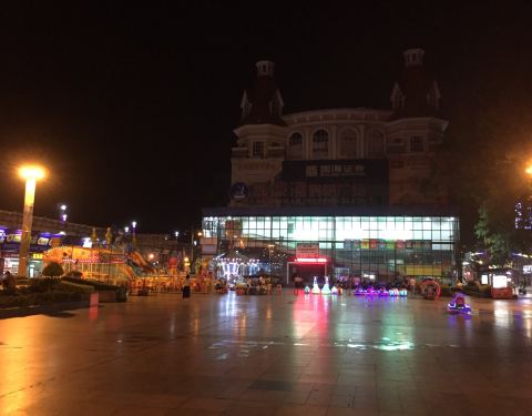 这里应该是丽港酒店旁边那个小广场,后面是丽港商业街,再往江边走就是西江。广场很小,有点儿童机动遊戏,旁边都是老房子,遊人也不算很多。