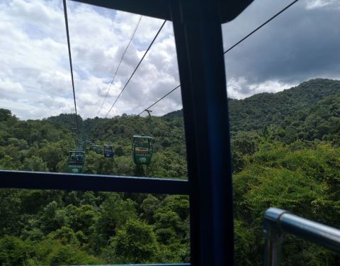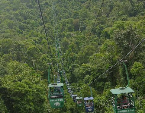 ...索道全长2000余米,距离山面高度最低处5米,最高处15米,是亚洲最长、最美的热带雨林观光索道
