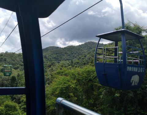 50元的一程,70元的双程,大概单程需要25分钟左右。只有两个人一个厢,厢是挺简单的,没有玻璃,下雨就是没有办法坐。翻过几座山谷,没有看到野象,风景还算不错!