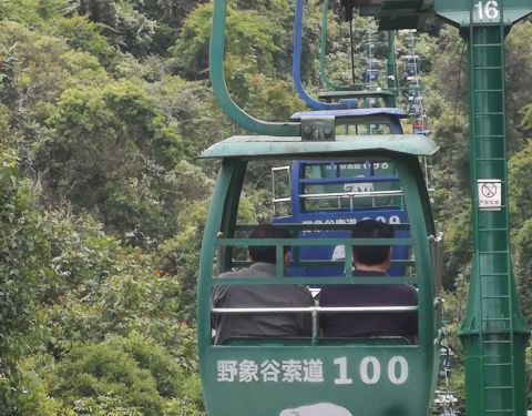 野象谷索道,个人觉得,还是坐单程好。先到里面,这时会看到被人驯养过的各种动物在表演。看完表演后坐缆车上山,途中可看到茂密的原始森林和一些动物等等。到山顶时,就要步行下山了。这样就不会错过很多景点了!