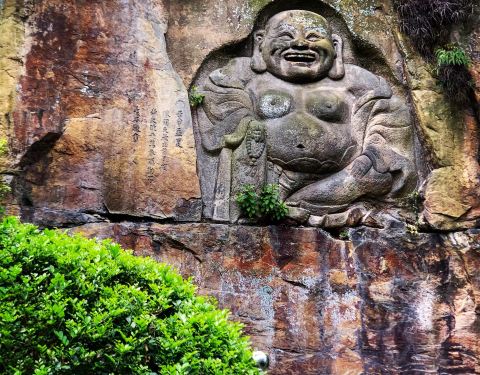 在新北市中和區近郊的山腰上,有一條登山步道,拾級而上沿途景觀秀麗。 禪寺建築融合日式,歐洲古典的混合風格非常特殊,主殿旁邊另有一處摩崖石刻,刻了一尊彌勒佛,笑口常開令觀賞者心生喜樂。