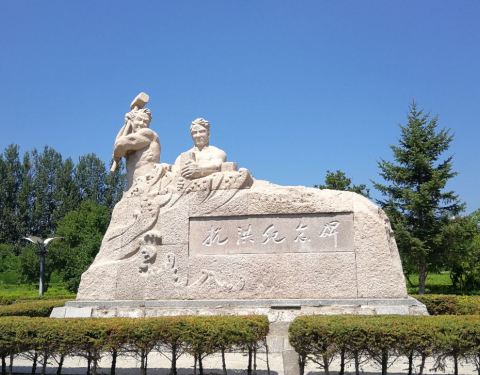 炎炎盛夏,大美吉林之旅——“龙井文化广场”(二十六), “龙井文化广场”,位于龙井市区中心,是龙井市唯一的文化休闲广场,广场很大,有“抗洪纪念碑”和一些雕塑,延吉河静静的从广场边流过……,