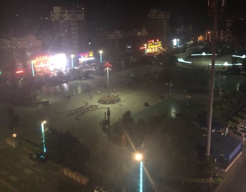 晚上很多人跳广场舞,很热闹,周围吃饭购物的地方很多。