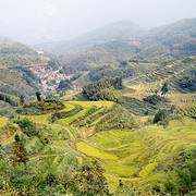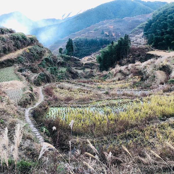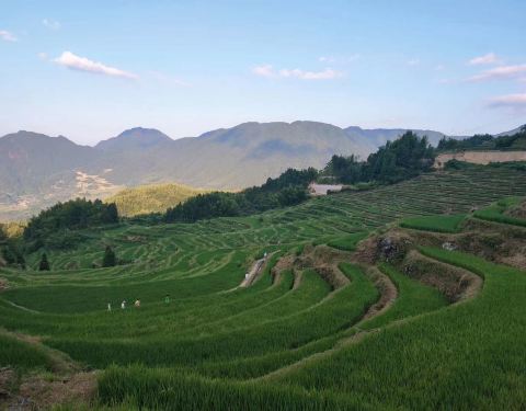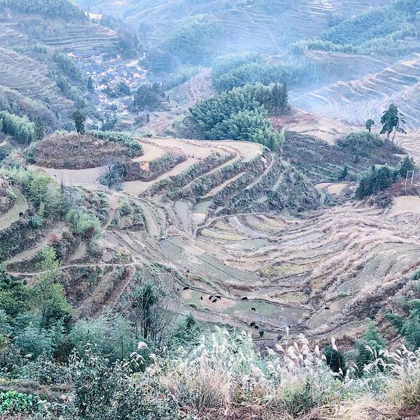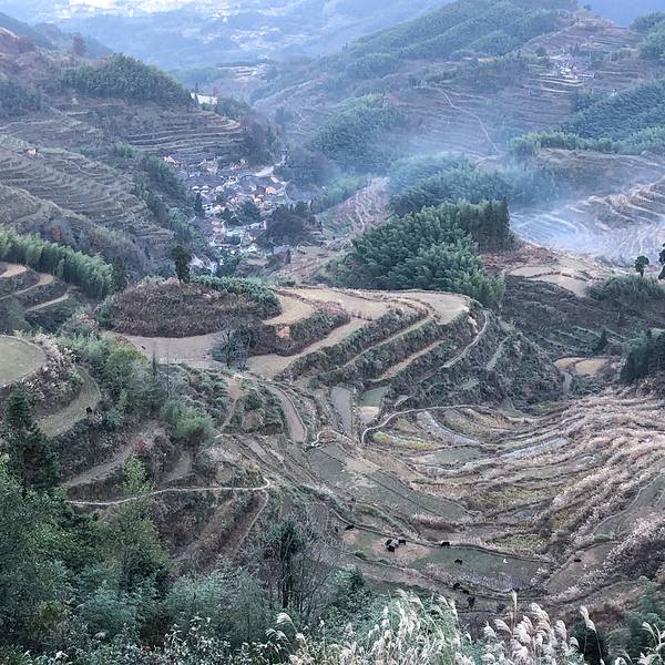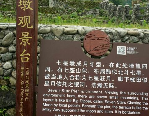 但我们来的比较晚,估计工作人员已经下班了,看到了层层叠叠的梯田,还有在梯田深处白银谷景区里的坑...离开九曲云环景区,接着沿着路往前走,到了一个千年古村落,很拗口的一个名字,所以没记住,有很破旧的房子,也有很现代的建筑,古韵犹在,风韵犹存,小桥流水人家,村子不大,充满了人文气息。七星墩景区也是需...离开九曲云环景区,接着沿着路往前走,到了一个千年古村落,很拗口的一个名字,所以没记住,有很破旧的房子,也有很现代的建筑,古韵犹在,风韵犹存,小桥流水人家,村子不大,充满了人文气息。七星墩景区也是需要购票的,但我们来的比较晚,估计工作人员已经下班了,看到了层层叠叠的梯田,还有在梯田深处白银谷景区里的坑根石寨古村落,我们决定去古村落逛一逛,于是顺着梯田下山啦!七星墩游览区位于梅竹村,地处白银谷的尽头。七星墩观景台,原来是一个月牙形的天然土墩,本地人叫“七星墩”,景区开发时依山势建造了一个月牙形的观景台。观景台下面就是白银谷,远处的村庄是坑根石寨。白银谷中有七座小山,它们像七颗星星在追月,于是白银谷就形成了“七星追月”的自然奇观。 展开