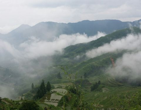 从七星墩可以一直往下游览,到白银古村。最高处的七星墩,海拔约1100米,有云和梯田最壮观开阔的景象最高处的七星墩,海拔约1100米,有云和梯田最壮观开阔的景象。从七星墩可以一直往下游览,到白银古村。据说一路有多条瀑布。可是开着车,觉得不便,便放弃了。