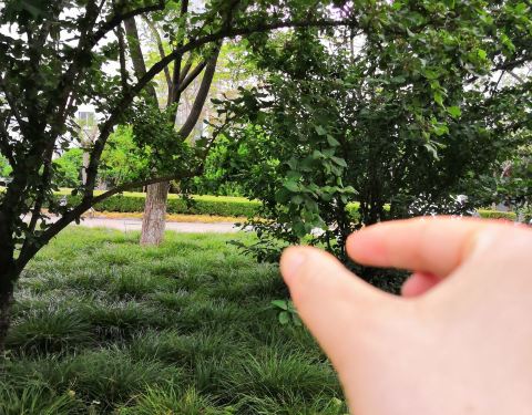 家门口,二宝每天必去一次,喂鱼,看大钟
