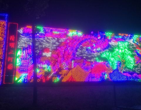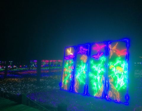 今晚林拥城灯光节,还不错啦。门口有免费拉你的电车。大概二十元一张门票,挺划算的。里面有些儿童玩具设施。可惜了没带大宝来。