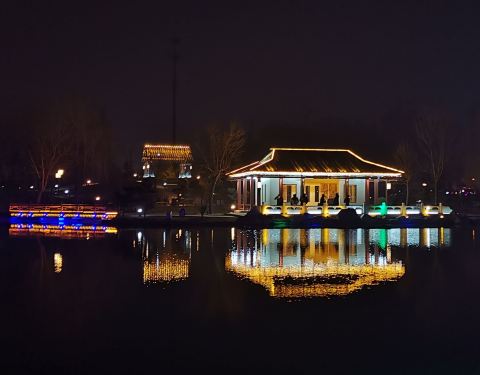 ...钢企业之乡—枣强,晚上到滨河公园和董子公园健走,沿河边五光十色的灯光秀把这座小城照耀得异常美丽
