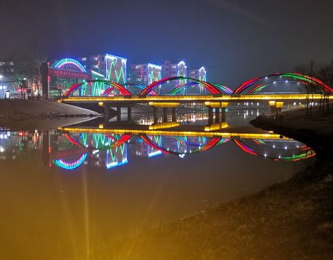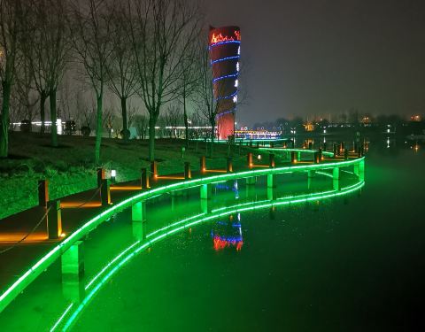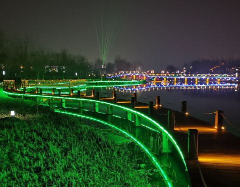 出差到河北玻璃钢企业之乡—枣强,晚上到滨河公园和董子公园健走,沿河边五光十色的灯光秀把这座小城照耀得异常美丽!仿佛来到了某个大都市,从小镇的变化看到中国城市之光…